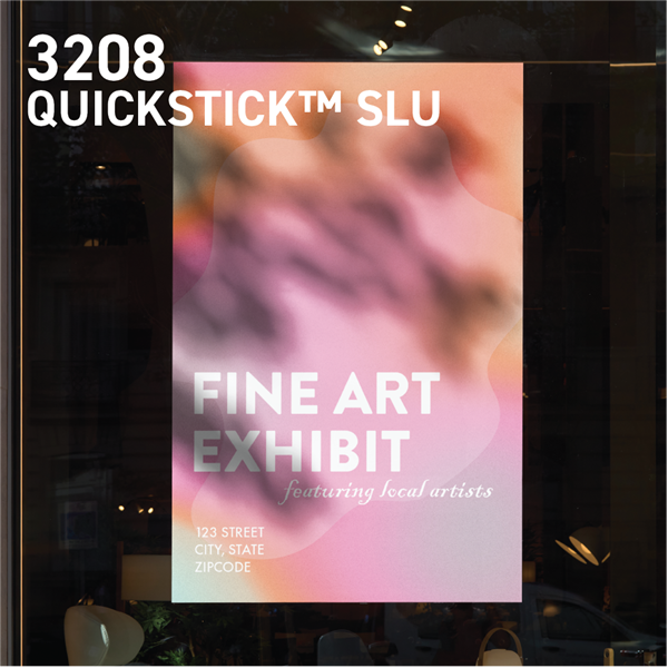 Sihl 3208 QuickSTICK™ SLU matte is a repositionable and removable adhesive textile product made of woven polyester. Sihl’s 3208 has been enhanced for Latex printer platforms, while still maintaining superb imaging quality on eco solvent/light solvent platforms as well as full solvent and UV printer platforms. QuickSTICK™ features a durable front side coating that allows for maximum graphic definition while also being scratch resitant, and a removable adhesive that allows for easy application yet removes without leaving any residue. Short term outdoor applications also benefit from the durability and flexibility of QuickSTICK™ SLU.